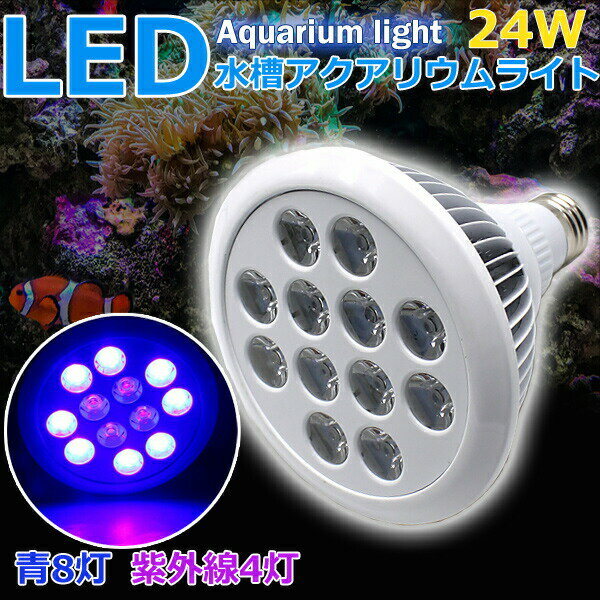 【即日発送】アクアリウム ライト LED 水槽照明 スポットライト 水草 青8 紫外線4 24W UV 殺菌 アクアリウム用品【送料無料】