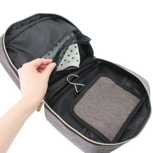 かさばる洗面用具をひとまとめにして持ち運びできます。