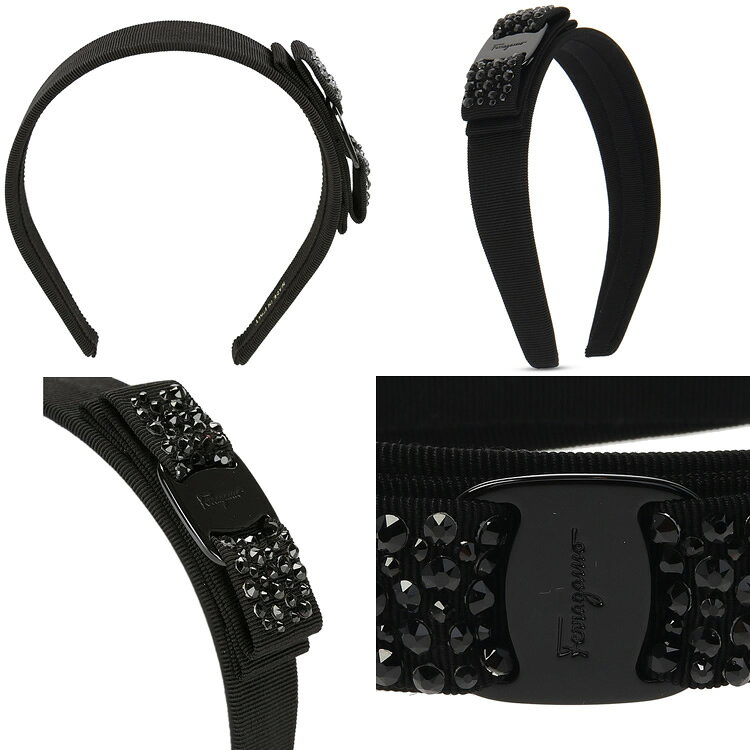 サルヴァトーレ フェラガモ カチューシャ ヴァラ リボン レディース ヘアバンド ヘアアクセサリー ビジュー 痛くない 大人 上品 結婚式 フォーマル ブランド プレゼント 女性 黒 Salvatore Ferragamo VARA BOW SWAROVSKI HEADBAND 341689 [ネコポス発送]