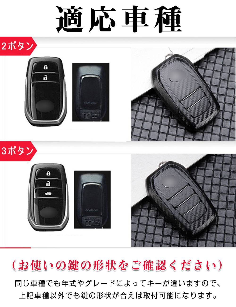 お使いのスマートキーの形状を必ず確認ください(写真参照) ※購入する前に、弊店の製品がお車に取り付けられるかどうかをご確認ください。