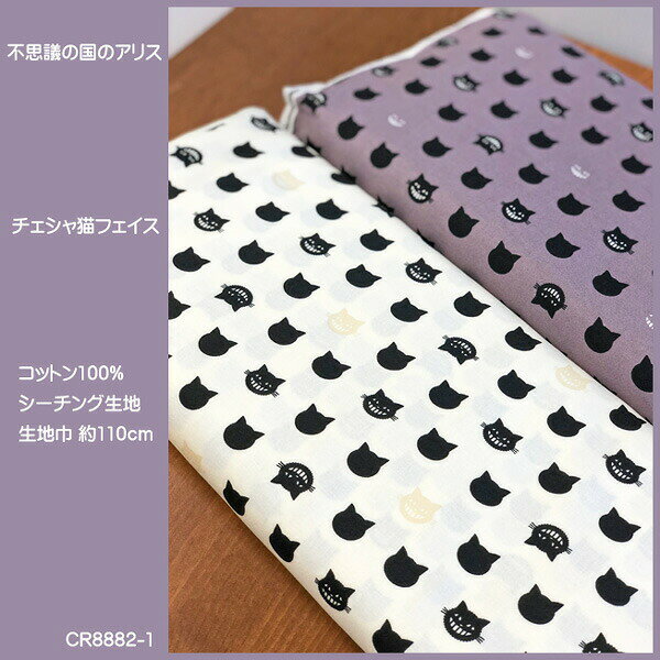 不思議の国のアリスシリーズ/チェシャ猫柄の生地/チェシャ猫フェイスがプリントされた生地です/シーチング生地/入園入学/アリス柄/ふしぎの国のアリス/N22